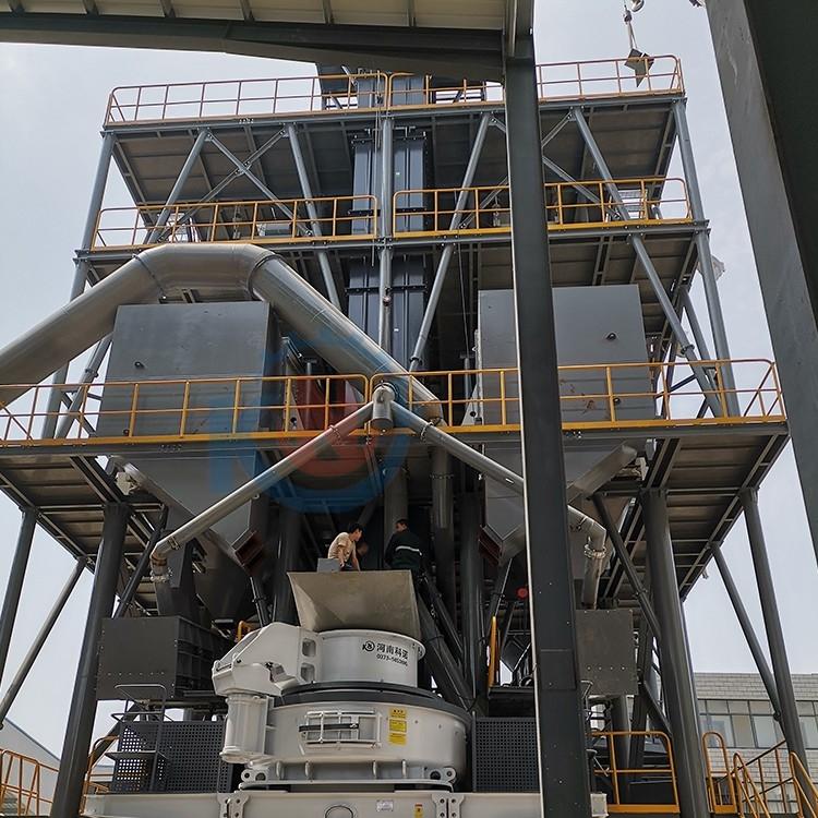 大部分廠家采用立軸沖擊式制砂機(jī)置頂方案,優(yōu)勢(shì):占地面積小;缺點(diǎn):土建造價(jià)高、主樓鋼構(gòu)高且制砂機(jī)內(nèi)部易損件更換不便,河南科諾機(jī)械設(shè)備有限公司在樓式制砂線基礎(chǔ)上優(yōu)化,把制砂機(jī)放置在地面上,便于維護(hù)和保養(yǎng),同時(shí)降低設(shè)備土建成本。